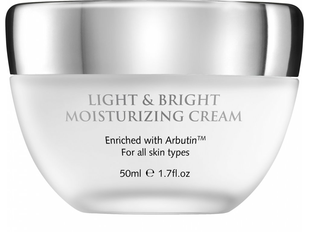 Denní hydratační krém na zjasnění pleti je založen na výtažku z Arbutinu ™ Bearberry, který je určen ke snížení výskytu tmavých skvrn a k viditelnému rozjasnění pleti. Tento bohatý krém, obohacený o minerální bohatou vodu z Mrtvého moře, zklidňující Aloe Vera a zelený čaj, antioxidační vitamíny C a E a mimořádně zvlhčující účinky oleje z brutnáku obsahujícího velké množství kyseliny gama-linolenové, dodává intenzivní hydrataci a zlepšuje pružnost pokožky a zanechává vám jemnou a krásnou pokožkou.
